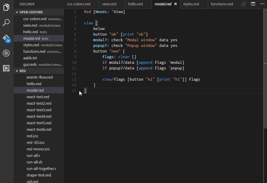 The Red stack consists of two main layers, the high-level Red language and a lower-level DSL called Red/System, meant for system programming. The high-level language is very similar to Rebol2 (roughly 95% source-compatible), so the Rebol documentation (mirror) can be used for learning Red until we get our own one. The full reference documentation for Red/System is available, the Red one is a work in progress.
